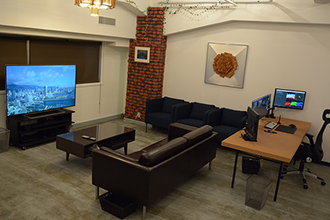 ゆったり広々した11人まで入室可能な編集室を併設。